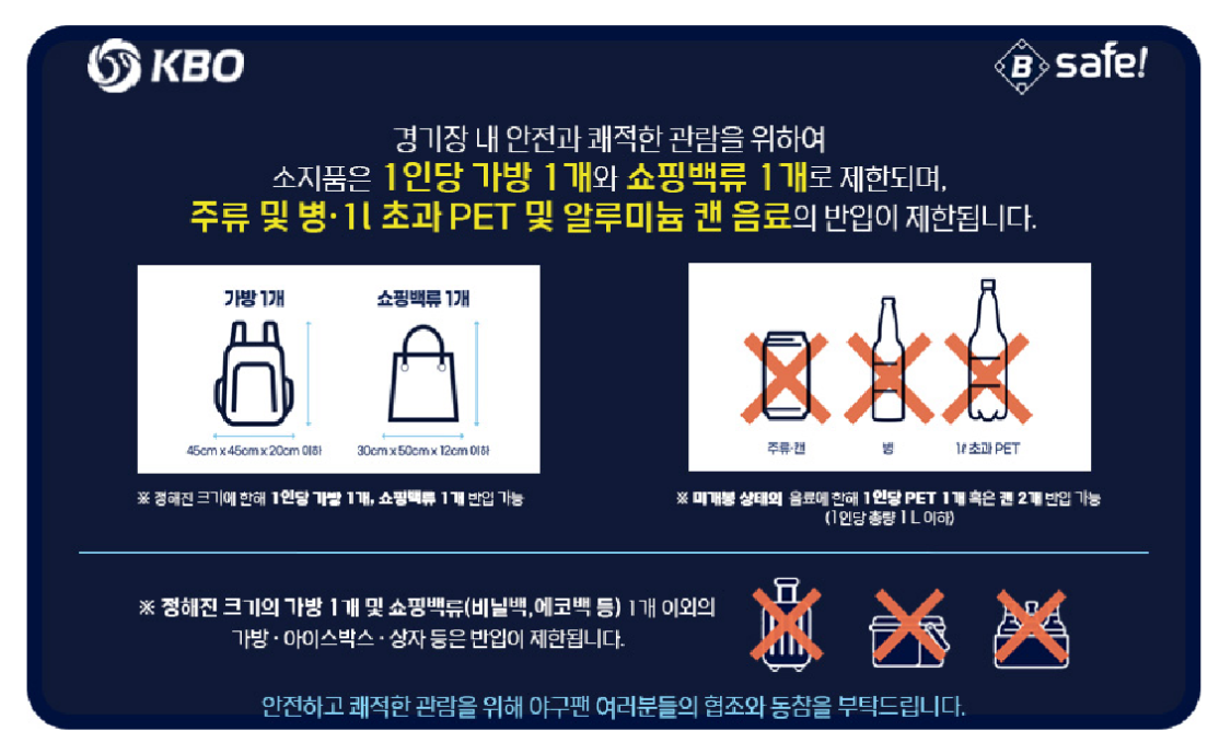 하지만 KBO의 공식 입장은 '주류는 반입 불가'예요. 그러니까 맥주든, 칵테일이든, 캔에 들어 있든, 페트병이든 외부에서 들고 들어가는 술은 허용되지 않는다는 거예요. 그렇다면... 이쯤에서 이런 질문이 생겨요.